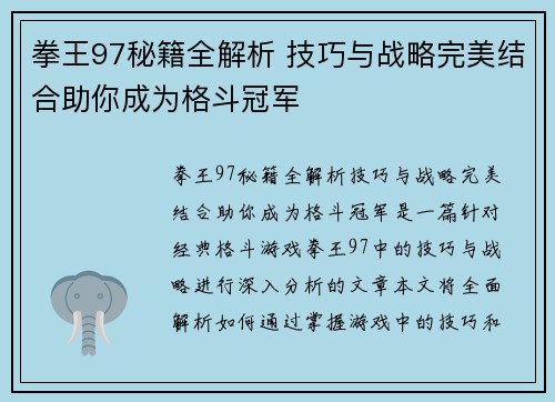 《女神试炼:勇者之路上的挑战与奇迹,突破极限成就无上荣耀》这篇文章,旨在探讨女神试炼这一特殊的冒险之旅中,勇者们如何在挑战与奇迹的交织中突破自我,最终成就无上荣耀。文章从四个主要方面进行详细阐述:一是女神试炼本身的历史背景与起源,二是勇者们在试炼过程中遇到的种种考验与难关,三是勇者们如何在试炼中获得...